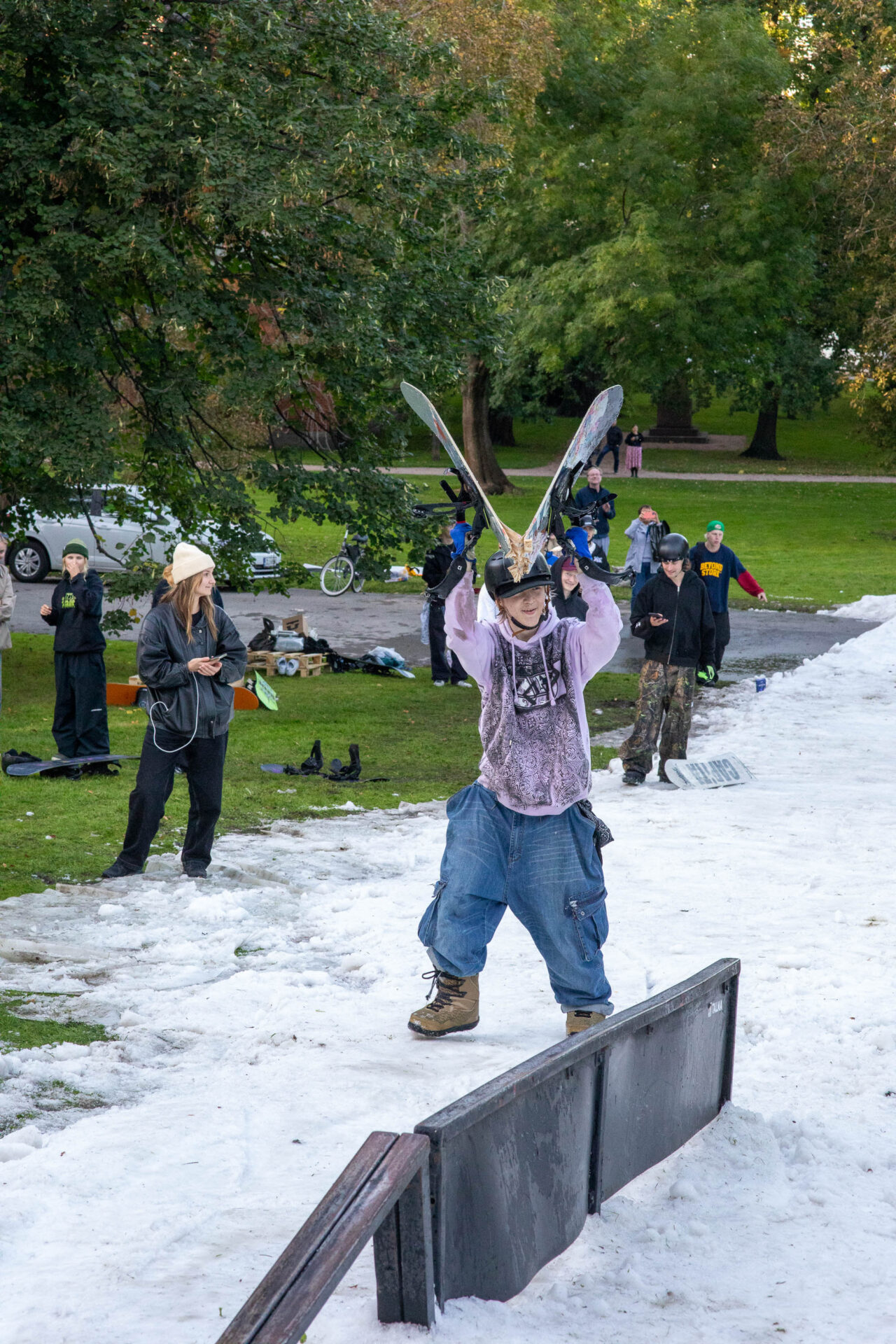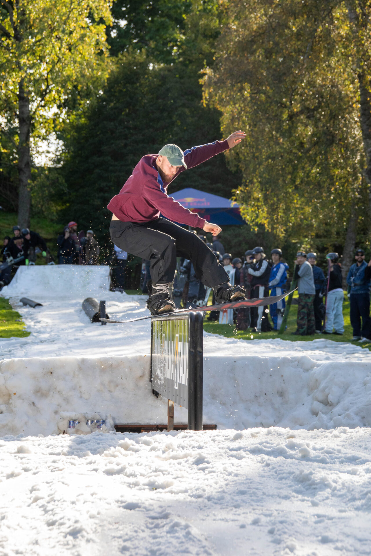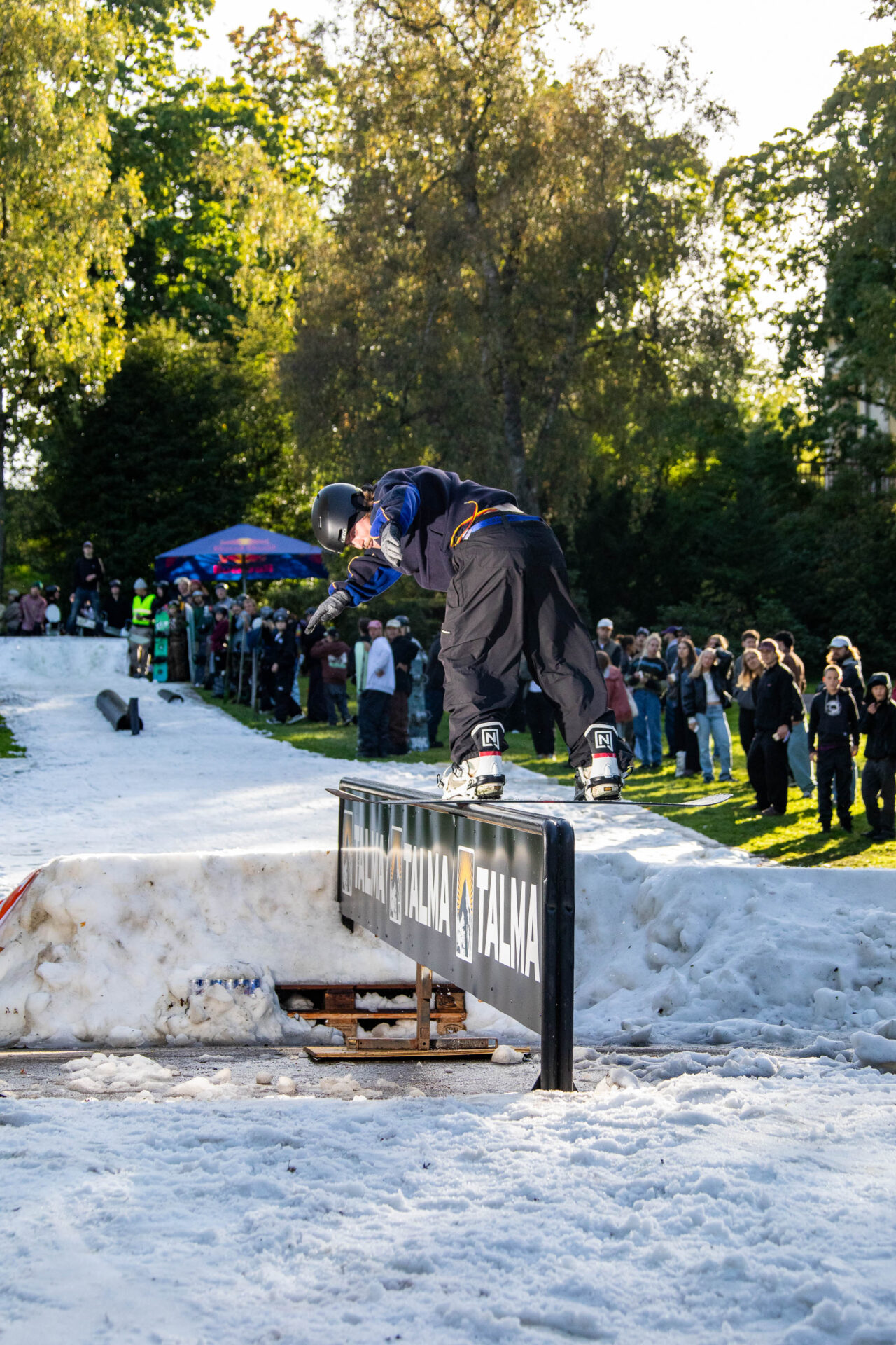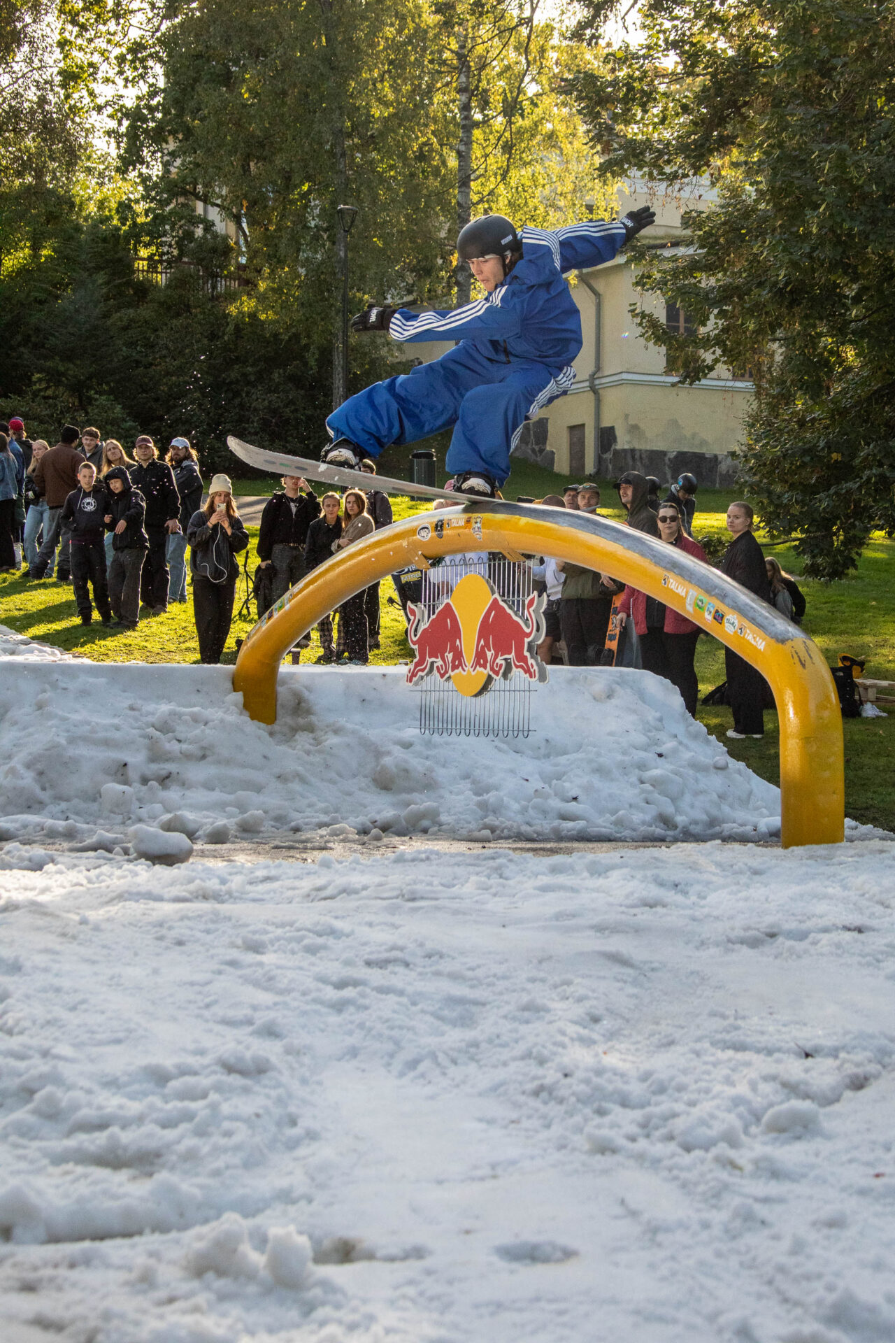 Meininki oli loistava koko päivän, sää suosi, miljöö ruotsinlaivoineen ja vihreine nurmikkoineen absurdi ja lumi pysyi yllättävän hyvässä kunnossa päivän loppuun saakka. Railbowin ja flättireilin yhdistelmä ei tarjonnut toki mitään uskomattomia kansan suosikkeja ja vaarallisia tilanteita, mutta hyvän mielen sessarit oli kivaa katsottavaa. Lopuksi sessattiin vielä alkupäähän virirettyä vaihtotuubi-pole yhdistelmää, johon mm. Aurelia Kaila pisti nätin fiftari bs kolmosen ja Roope Rautiainen mm. bs tail kakkosen.